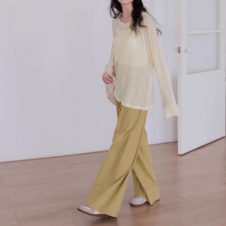 軽やかなシアー素材が、洗練された大人の抜け感を演出するロングスリーブTシャツです。