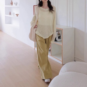 ゆったりとしたドロップショルダーデザインで、リラックス感がありながらも上品な印象に。