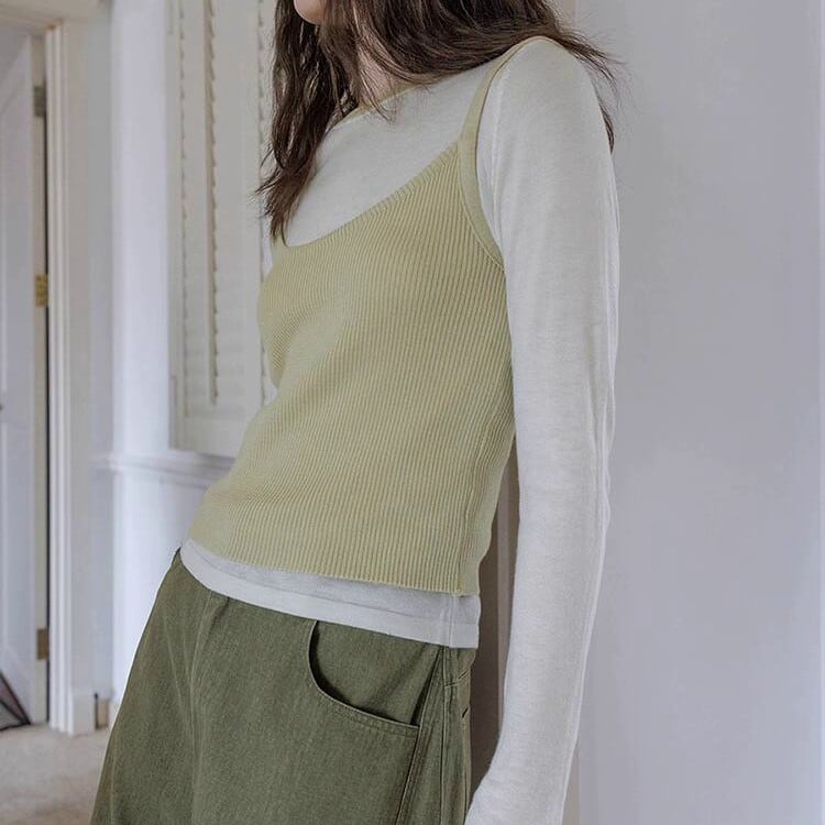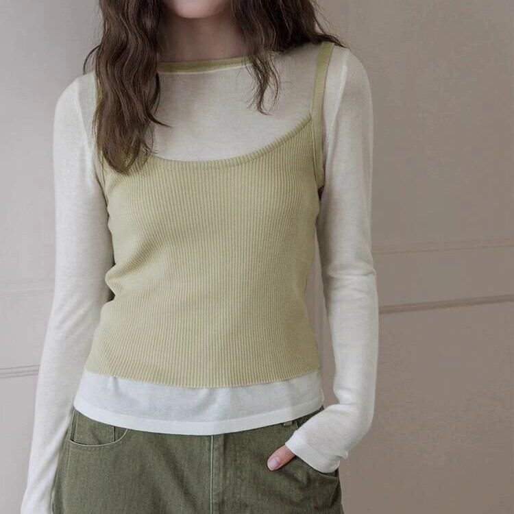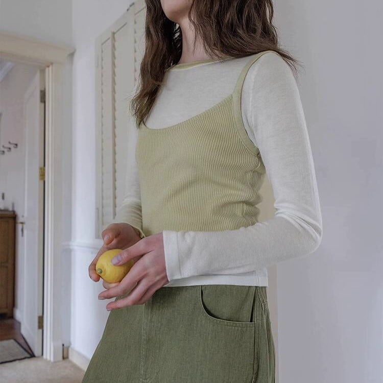 一枚でトレンドスタイルが叶う、シアーカットソーとリブキャミソールのレイヤードセットです。