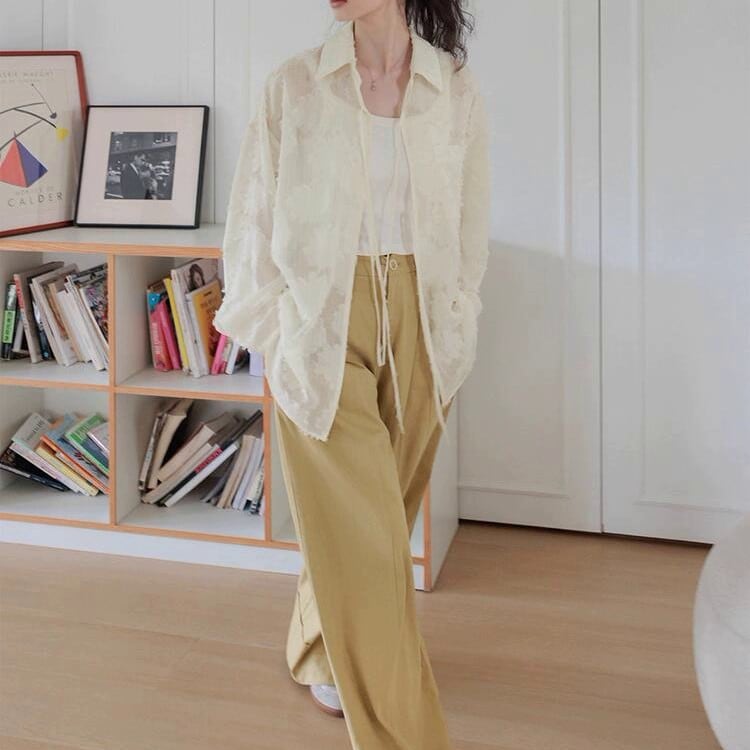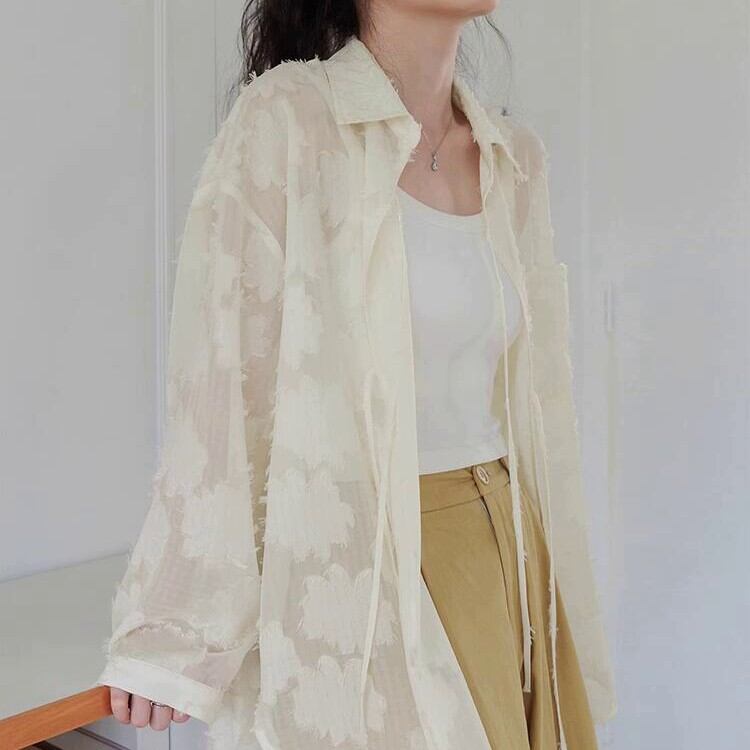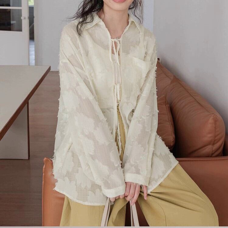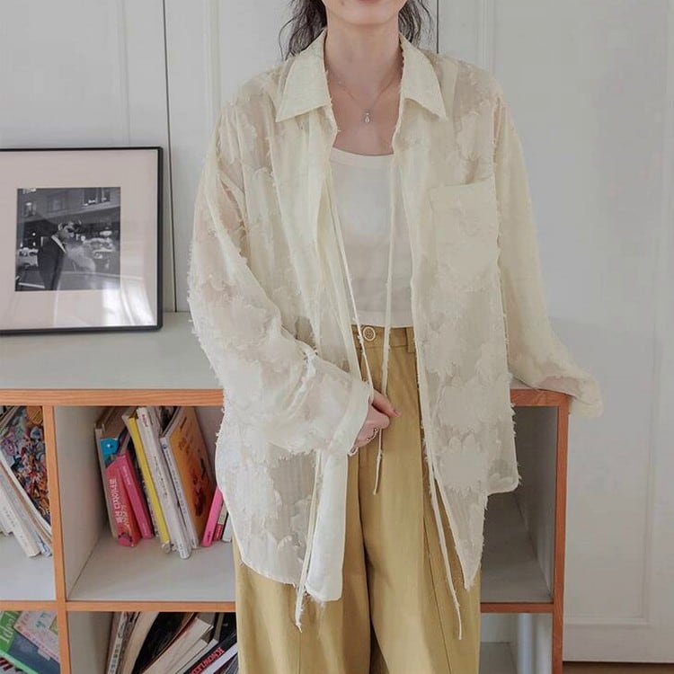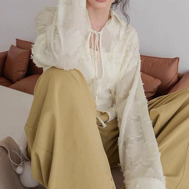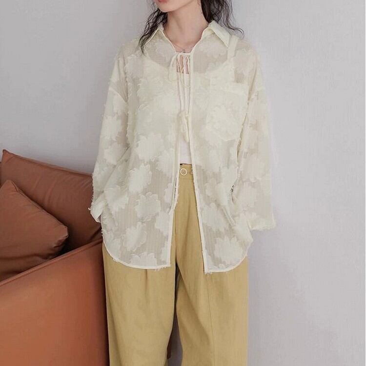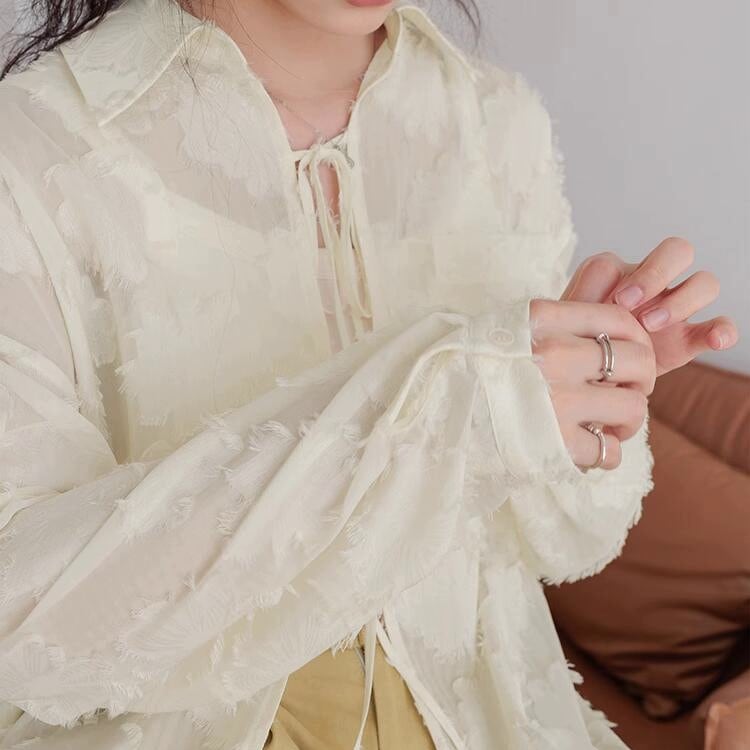 一枚でコーディネートを格上げする、デザイン性の高いシアーブラウスです。