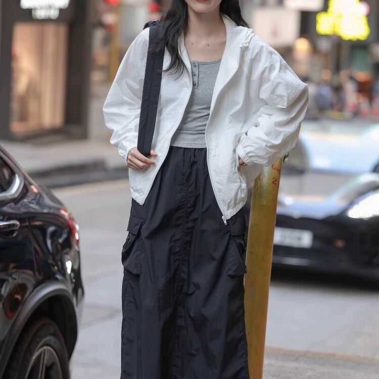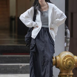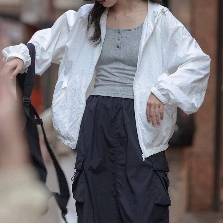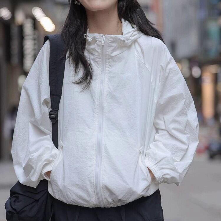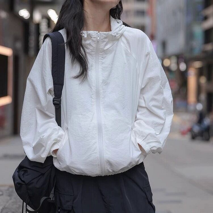 季節の変わり目に重宝する、着回し力抜群のホワイトフーディブルゾンです。