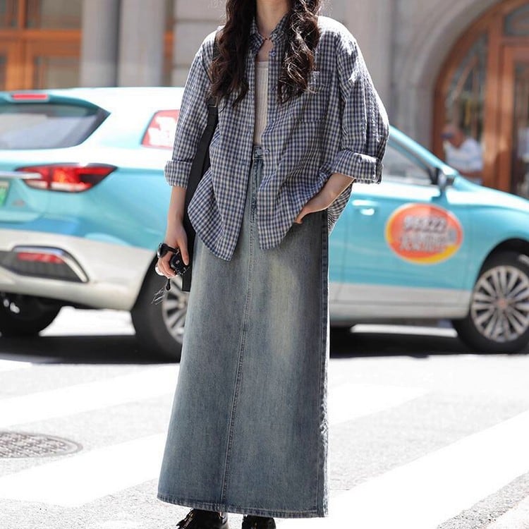 落ち着いた色合いのチェック柄が魅力の、オーバーサイズシャツです。