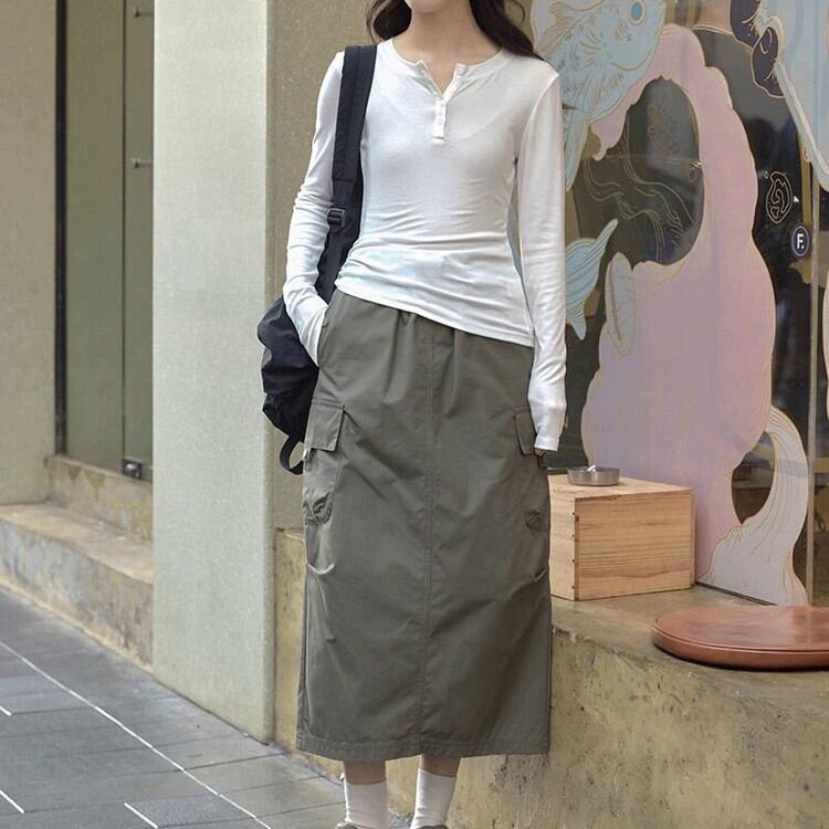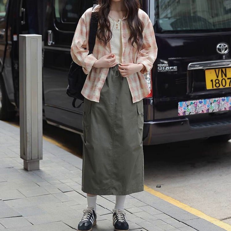 ウエストにドロストデザインが施された、こなれ感のあるミリタリースカートです。 シルエットの変化を楽しめ、コーディネートの幅が広がります。 スニーカーでラフに、ブーツでモードにと、足元で雰囲気を変えられます。 ■サイズ 【S】 ウエスト:64cm ヒップ:90cm 総丈:79cm 【M】ウエスト:68cm ヒップ:94cm 総丈:80cm 【L】 ウエスト:72cm ヒップ:98cm 総丈:81cm ※モデル身長160cm、Sサイズ着用 ※目安となります。測り方により、1〜3cm程の誤差がある場合がございます。 ■カラー グレー アーミーグリーン ■素材 綿100% ■FesLushでは、多数アイテムを取り揃えております。 下記URLよりぜひチェックしてみてください♪ https://shop.feslush.com/ ■おすすめ商品はこちら♪ https://shop.feslush.com/categories/6630481 ●●ご購入前に必ずご覧下さい●● こちらをお読みいただき、ご了承いただいた上でご購入をお願いいたします。 →https://shop.feslush.com/about ●注意事項● ・タイミングによっては 商品在庫切れにより注文キャンセルとさせていただく恐れもございます。予めご了承くださいませ。 ・発送までに「1週間〜3週間」のお時間をいただきます。 ・こちらは輸入品となります。日本製とは検品基準が異なる為、新品未使用品でもごくわずかな汚れや傷がある場合もございます。 ・光の当たり具合やお使いの端末の関係上、実際の色合いと若干差が出る可能性がございます。 ・イメージ違いやサイズ交換等、お客さまご都合による交換、返品は対応出来かねます。