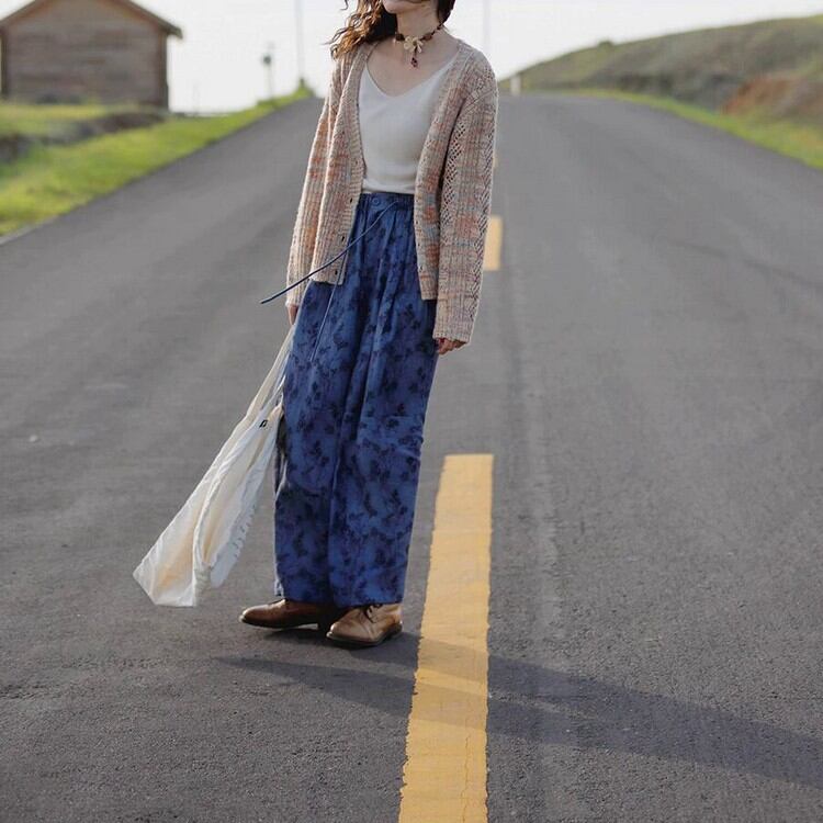 シンプルなトップスと合わせるだけで、おしゃれ度がアップする一枚です。