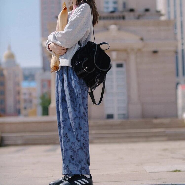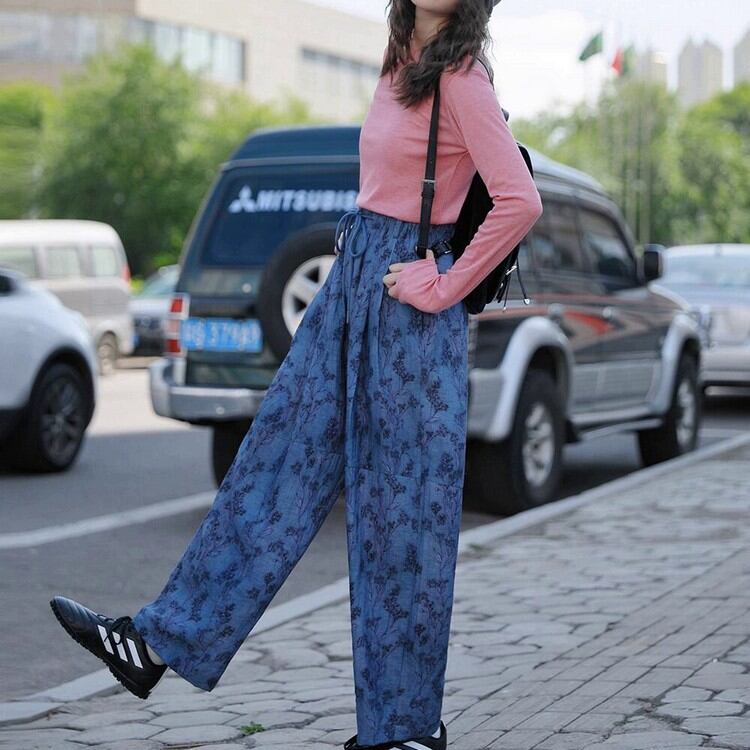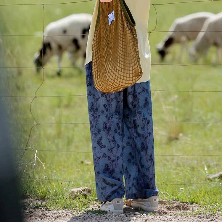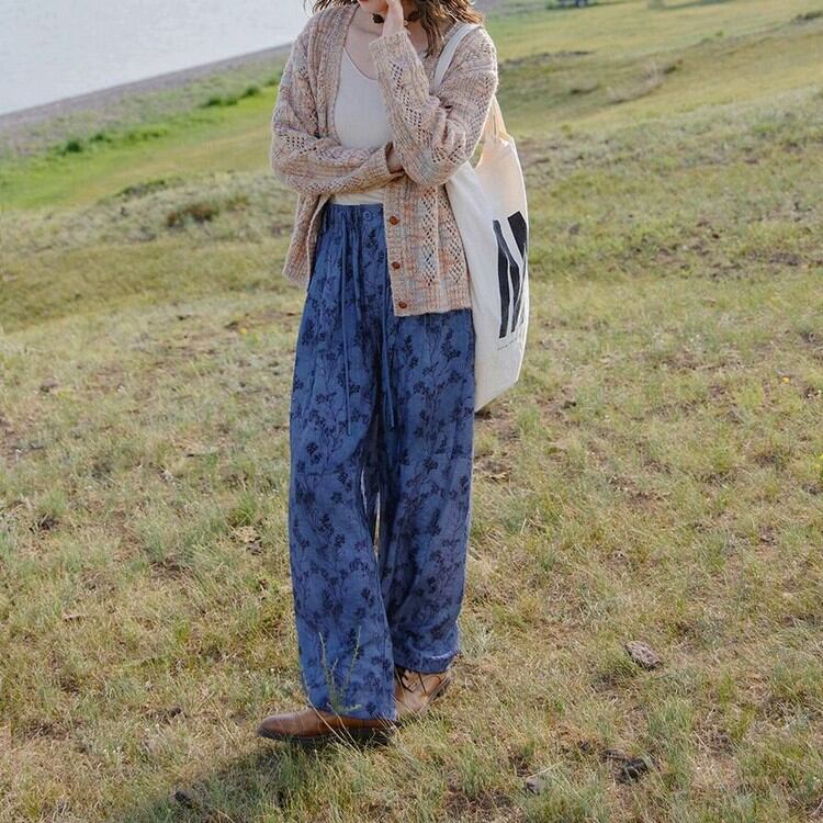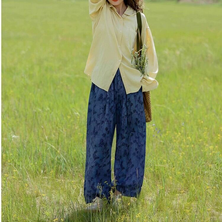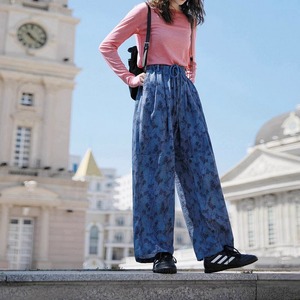 繊細な花柄プリントが印象的な、ワイドシルエットパンツ。