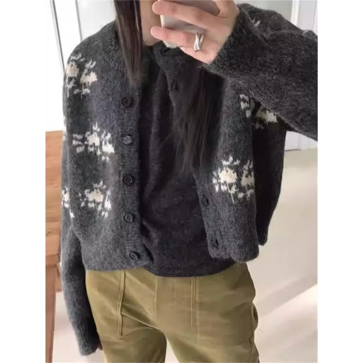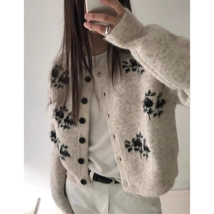 クルーネックのローゲージニットカーディガンです。 さりげない花柄の模様が、シンプルなデザインにアクセントを加えています。 ボタンを閉めて暖かく着ても、羽織として軽く羽織っても◎。 カジュアルなスタイルにも、きれいめなスタイルにも合わせやすく、様々なシーンで活躍するアイテムです。 ■サイズ 【S】胸囲:110cm 着丈:51cm 【M】胸囲:114cm 着丈:52cm 【L】胸囲:118cm 着丈:53cm ※目安となります。測り方により、1〜3cm程の誤差がある場合がございます。 ■カラー オフホワイト グレー ■素材 アクリル ■FesLushでは、多数アイテムを取り揃えております。 下記URLよりぜひチェックしてみてください♪ https://shop.feslush.com/ ■おすすめ商品はこちら♪ https://shop.feslush.com/categories/6630481 ●●ご購入前に必ずご覧下さい●● こちらをお読みいただき、ご了承いただいた上でご購入をお願いいたします。 →https://shop.feslush.com/about ●注意事項● ・タイミングによっては 商品在庫切れにより注文キャンセルとさせていただく恐れもございます。予めご了承くださいませ。 ・発送までに「1週間〜3週間」のお時間をいただきます。 ・こちらは輸入品となります。日本製とは検品基準が異なる為、新品未使用品でもごくわずかな汚れや傷がある場合もございます。 ・光の当たり具合やお使いの端末の関係上、実際の色合いと若干差が出る可能性がございます。 ・イメージ違いやサイズ交換等、お客さまご都合による交換、返品は対応出来かねます。