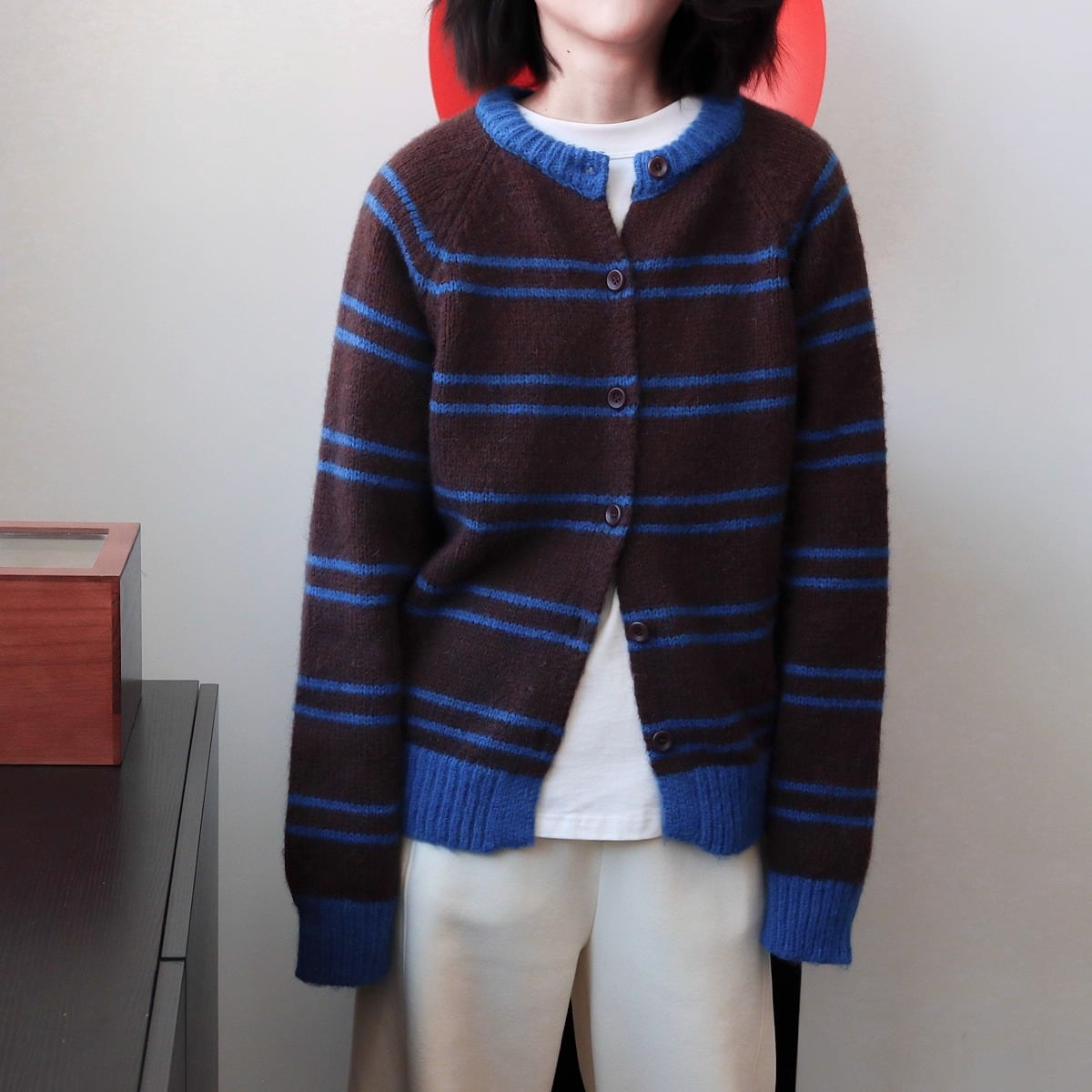 ボーダークルーネックニットカーディガン B0170