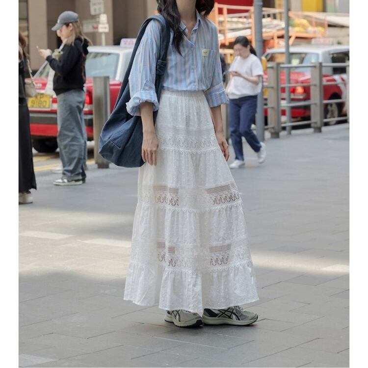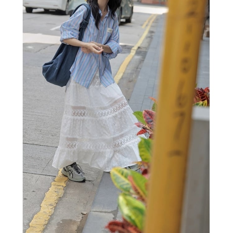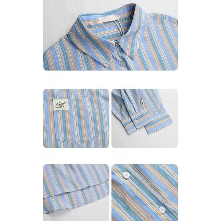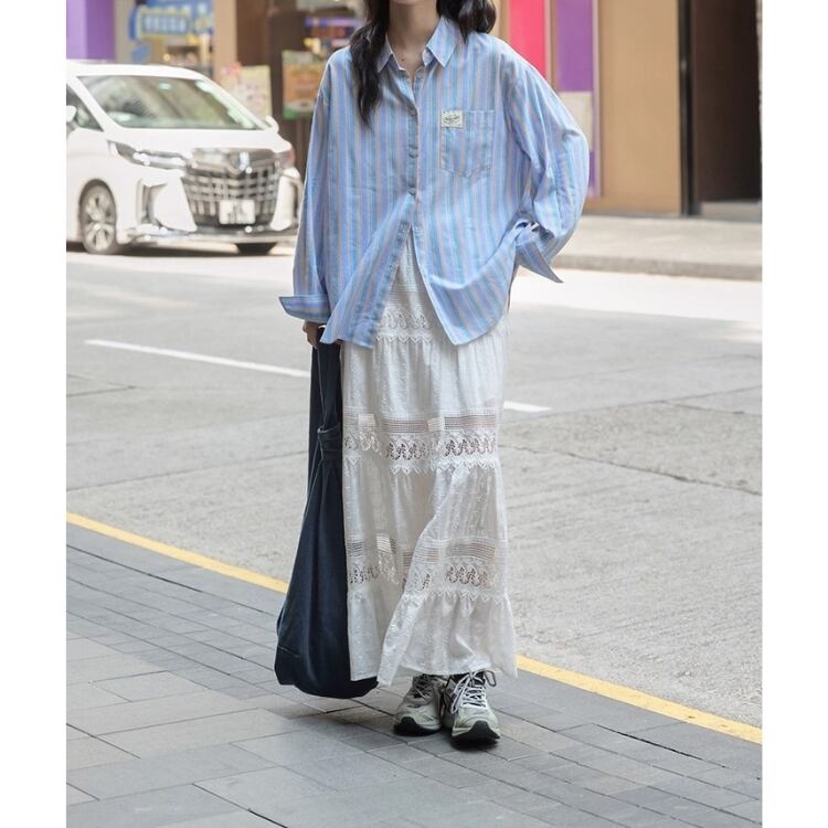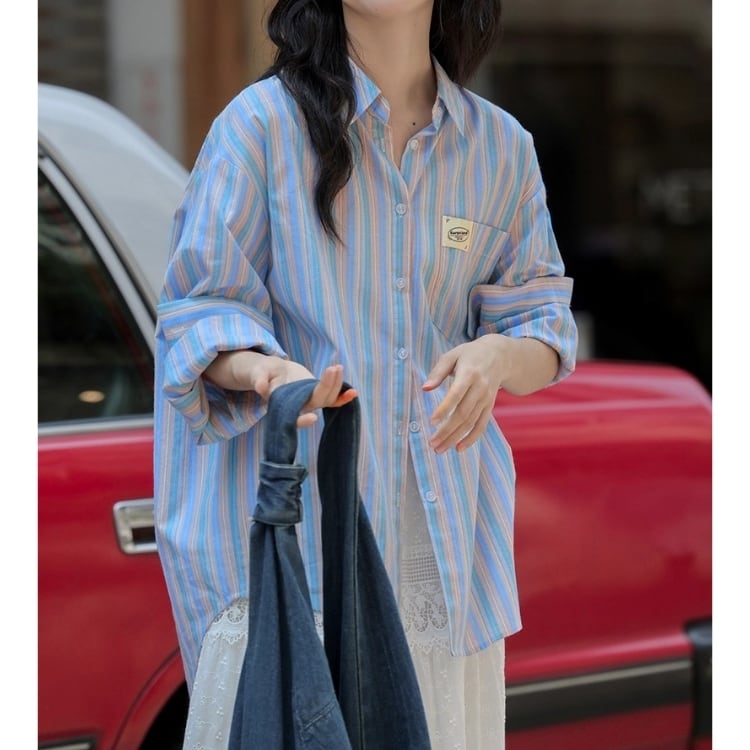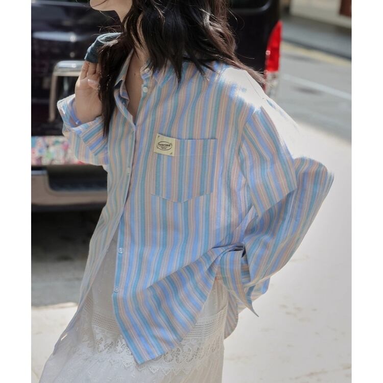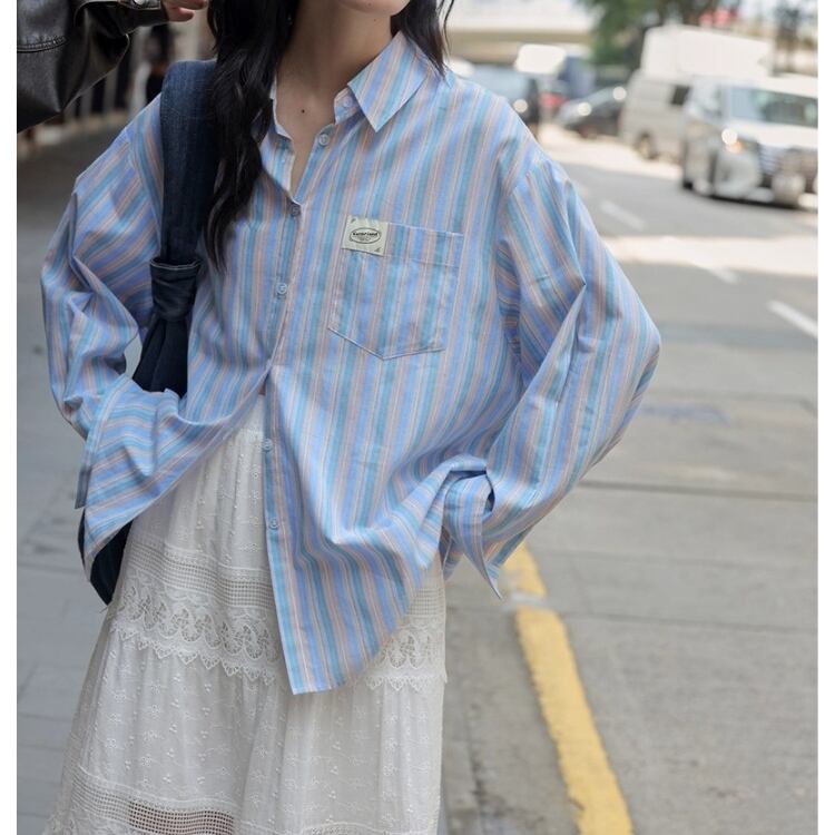 爽やかなストライプ柄が魅力のオーバーサイズロングスリーブシャツ。