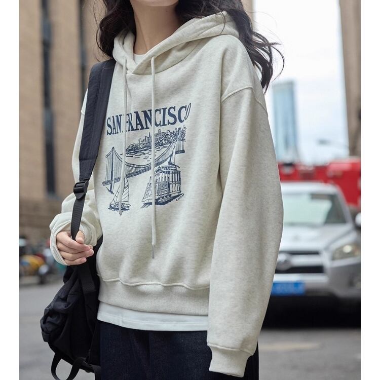 胸元のサンフランシスコのイラストが、さりげないアクセントになっています。