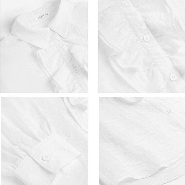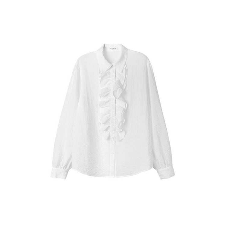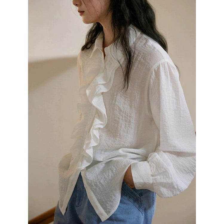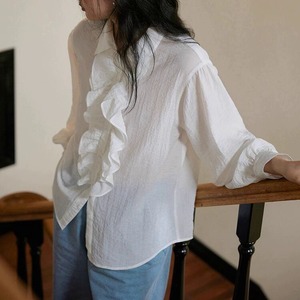 後ろのフリルデザインがシンプルな白シャツに遊び心を添え、大人カジュアルな装いを叶えます。