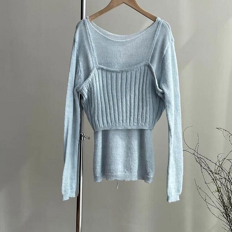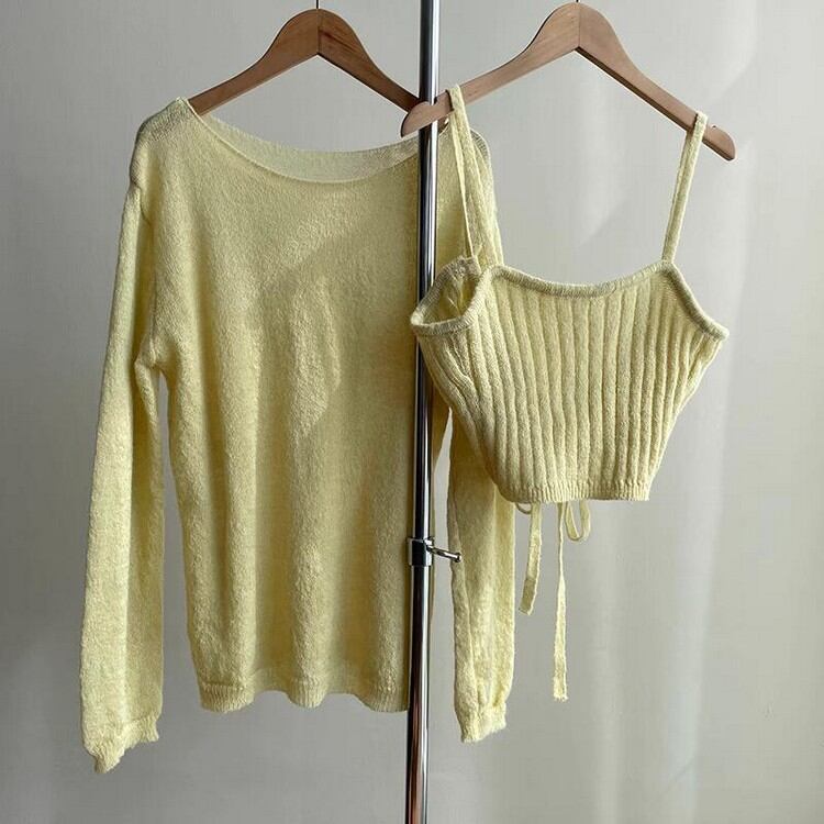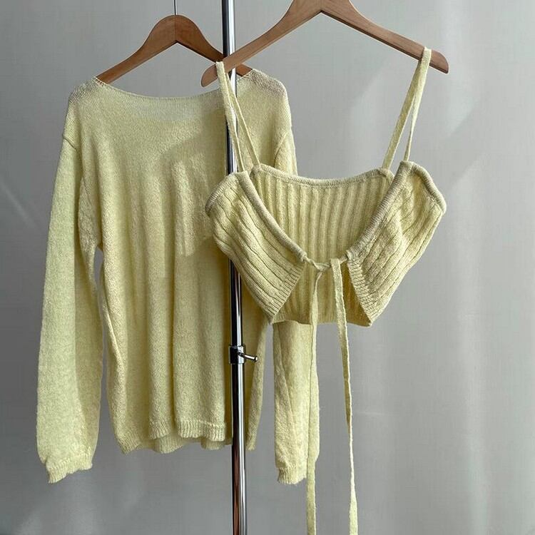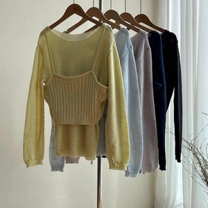 旬の透け感ニットと、クロップド丈のリブキャミソールがセットになった即戦力アイテムです。 それぞれ単品でも着回し可能なので、スタイリングの幅が大きく広がります。 セットで着るだけでおしゃれが完成し、休日のお出かけからちょっとしたお呼ばれまでシーンレスに活躍します。 ■サイズ 【F】肩幅:41cm 胸囲:86cm 着丈:62cm 袖丈:61cm ※目安となります。測り方により、1〜3cm程の誤差がある場合がございます。 ■カラー イエロー ブルー パープル ネイビー ブラック ■素材 トリアセテート100% ■FesLushでは、多数アイテムを取り揃えております。 下記URLよりぜひチェックしてみてください♪ https://shop.feslush.com/ ■おすすめ商品はこちら♪ https://shop.feslush.com/categories/6630481 ●●ご購入前に必ずご覧下さい●● こちらをお読みいただき、ご了承いただいた上でご購入をお願いいたします。 →https://shop.feslush.com/about ●注意事項● ・タイミングによっては 商品在庫切れにより注文キャンセルとさせていただく恐れもございます。予めご了承くださいませ。 ・発送までに「1週間〜3週間」のお時間をいただきます。 ・こちらは輸入品となります。日本製とは検品基準が異なる為、新品未使用品でもごくわずかな汚れや傷がある場合もございます。 ・光の当たり具合やお使いの端末の関係上、実際の色合いと若干差が出る可能性がございます。 ・イメージ違いやサイズ交換等、お客さまご都合による交換、返品は対応出来かねます。