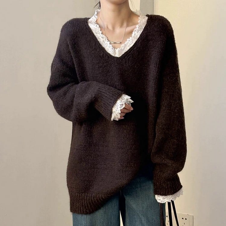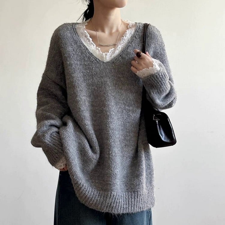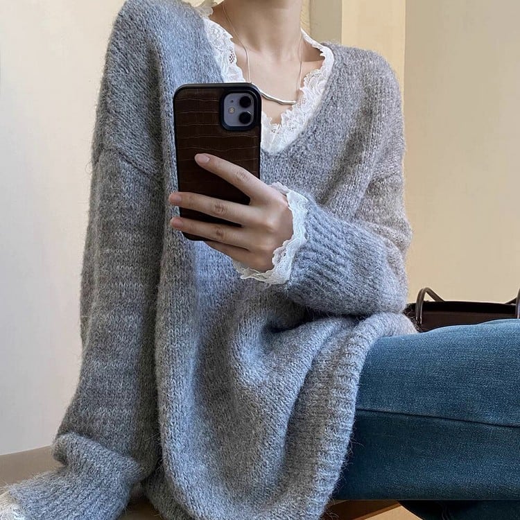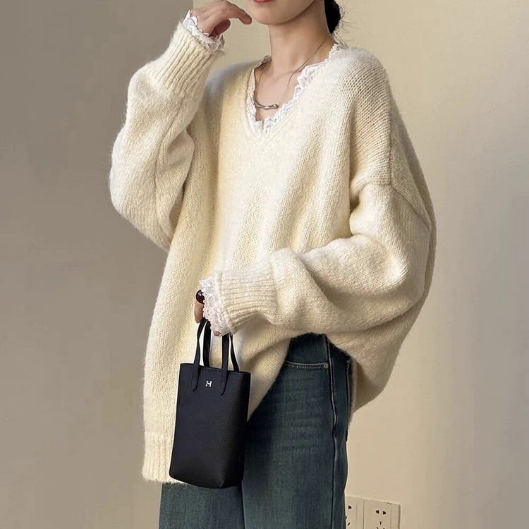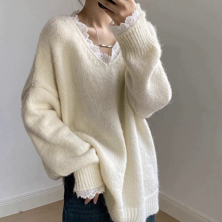 甘すぎないレース使いで、カジュアルなニットに洗練されたムードを添えます。