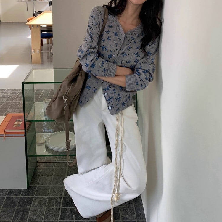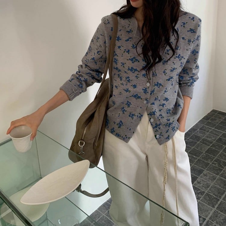 柔らかなタッチの小花柄が、着こなしにノスタルジックで上品なムードをプラスします。