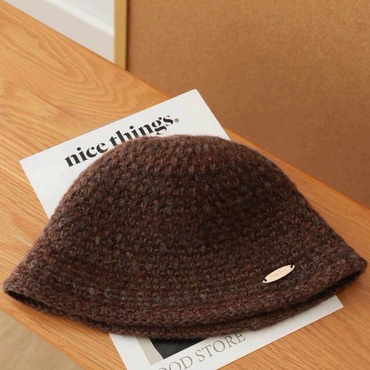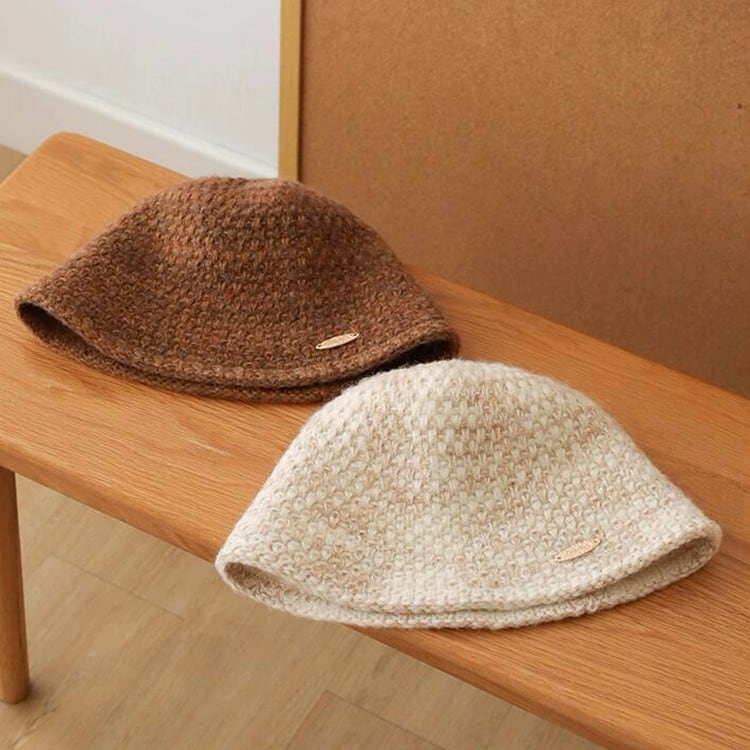 ざっくりとした表情豊かなツイード調の編み地が魅力のバケットハット。