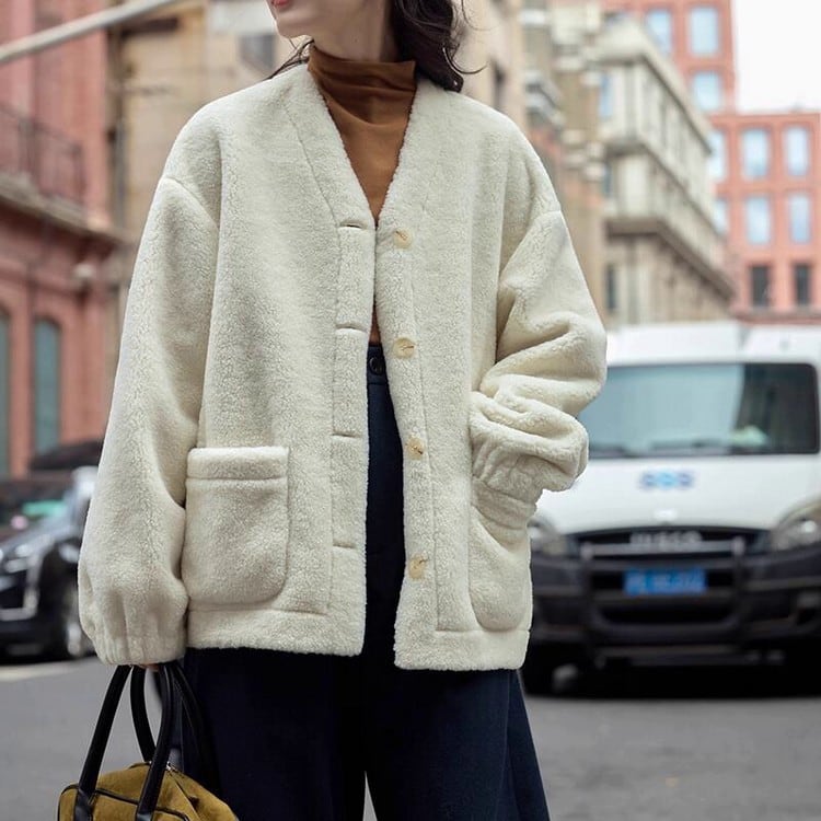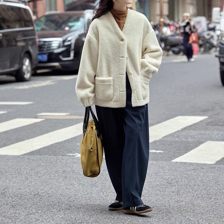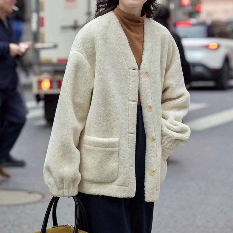 モコモコとした愛らしいボア素材が、暖かく優しい印象を与えるVネックブルゾン。 カーディガンのようにさらりと羽織れる軽やかさと、ゆったりしたシルエットが魅力。 ノーカラーのすっきりした首元で、タートルネックなどインナーとのレイヤードも楽しめます。 ■サイズ 【XS】 肩幅:54cm 胸囲:112cm 着丈:68cm 袖丈:52cm 【S】 肩幅:55cm 胸囲:116cm 着丈:69cm 袖丈:53cm 【M】 肩幅:56cm 胸囲:120cm 着丈:70cm 袖丈:54cm 【L】 肩幅:57cm 胸囲:124cm 着丈:71cm 袖丈:55cm ※目安となります。測り方により、1〜3cm程の誤差がある場合がございます。 ■カラー ブラック ホワイト グレー ■素材 ポリエステル ■FesLushでは、多数アイテムを取り揃えております。 下記URLよりぜひチェックしてみてください♪ https://shop.feslush.com/ ■おすすめ商品はこちら♪ https://shop.feslush.com/categories/6630481 ●●ご購入前に必ずご覧下さい●● こちらをお読みいただき、ご了承いただいた上でご購入をお願いいたします。 →https://shop.feslush.com/about ●注意事項● ・タイミングによっては 商品在庫切れにより注文キャンセルとさせていただく恐れもございます。予めご了承くださいませ。 ・発送までに「1週間〜3週間」のお時間をいただきます。 ・こちらは輸入品となります。日本製とは検品基準が異なる為、新品未使用品でもごくわずかな汚れや傷がある場合もございます。 ・光の当たり具合やお使いの端末の関係上、実際の色合いと若干差が出る可能性がございます。 ・イメージ違いやサイズ交換等、お客さまご都合による交換、返品は対応出来かねます。