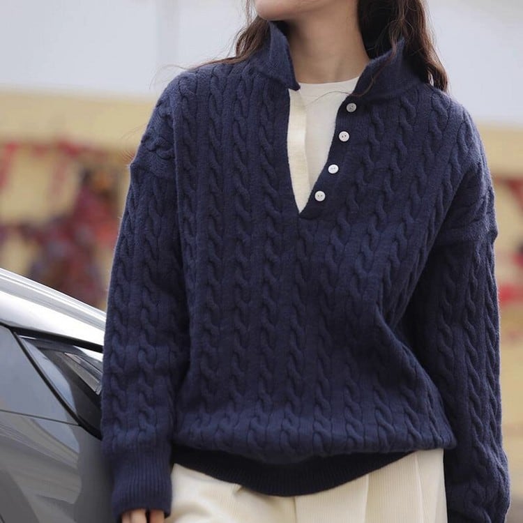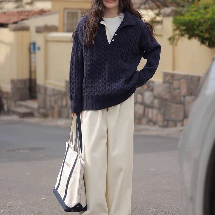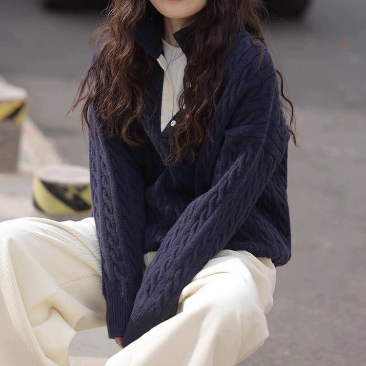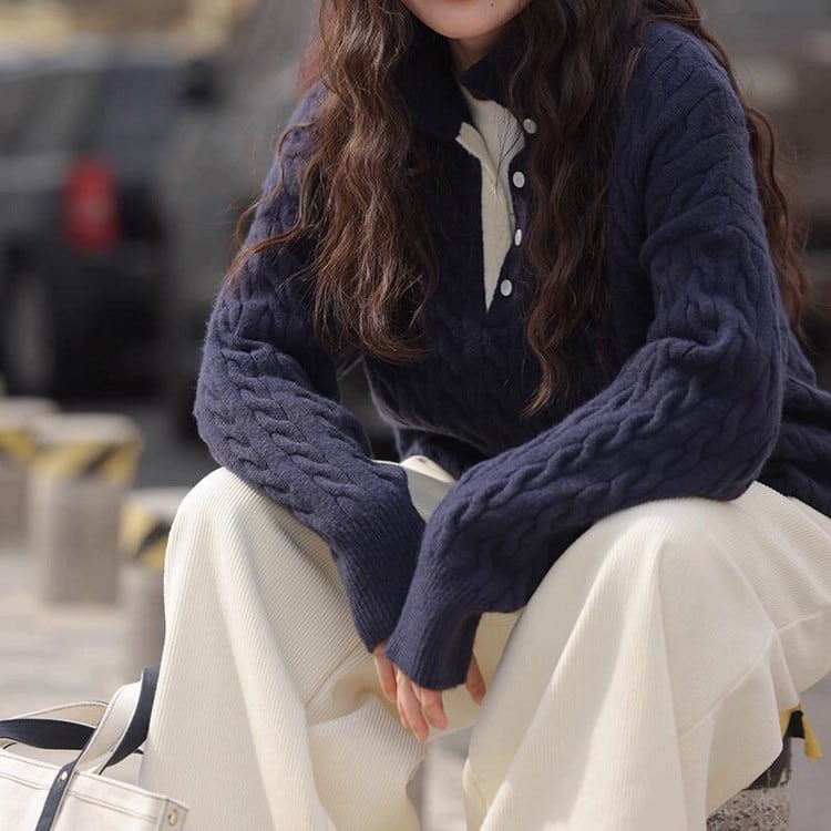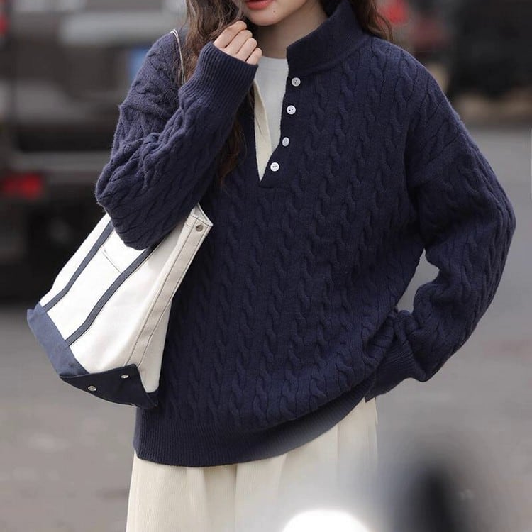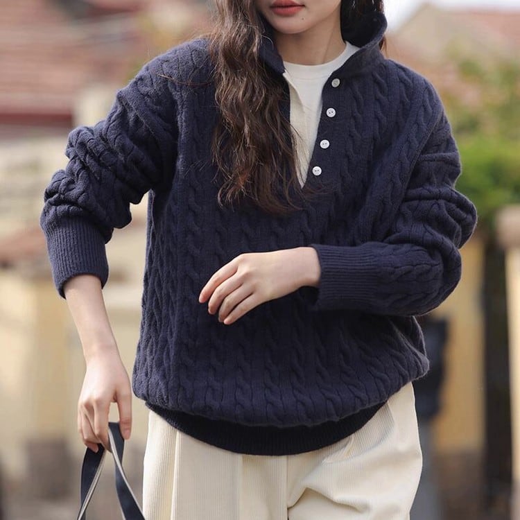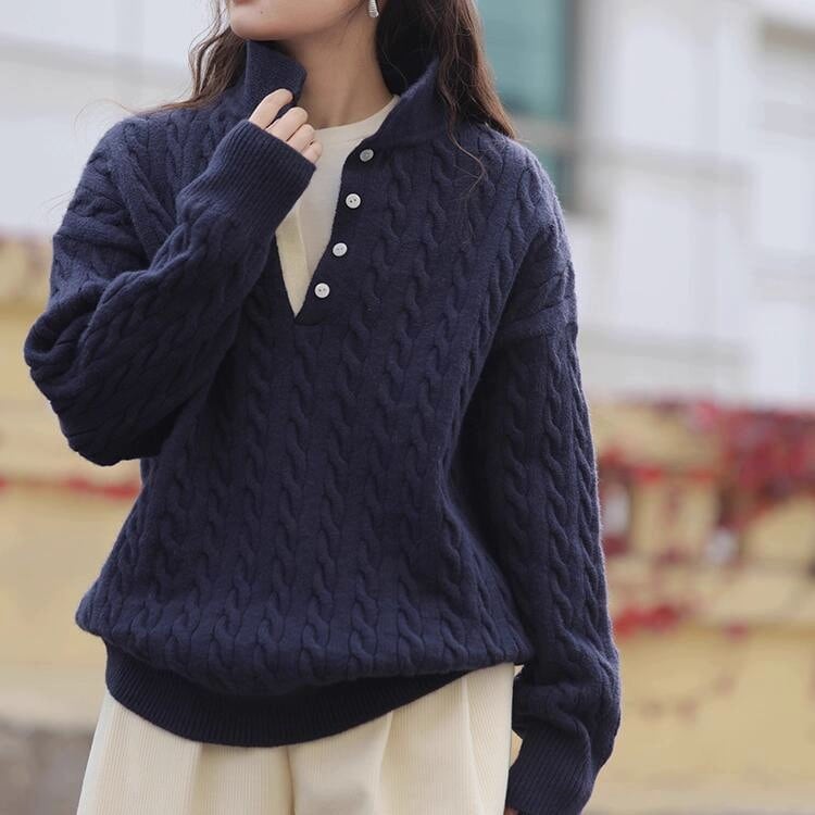 ケーブルボタンタートルセーター B0294