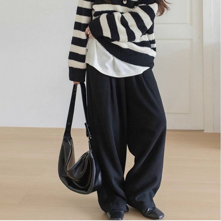 ストンと落ちるシルエットが魅力のワイドストレートパンツ。 トップスを選ばないから、普段使いにもオフィススタイルにも合わせやすい万能アイテムです。 シンプルなデザインなので、小物でアクセントをつけて、自分らしい着こなしを楽しめます。 ■サイズ 【XS】 ウエスト:62-72cm ヒップ:112cm 太もも:69cm 総丈:95cm 裾幅:49cm 【S】 ウエスト:64-74cm ヒップ:114cm 太もも:70cm 総丈:98cm 裾幅:50cm 【M】 ウエスト:68-78cm ヒップ:118cm 太もも:72cm 総丈:100cm 裾幅:52cm 【L】 ウエスト:72-82cm ヒップ:122cm 太もも:74cm 総丈:102cm 裾幅:54cm ※モデル身長168cm、Sサイズ着用 ※目安となります。測り方により、1〜3cm程の誤差がある場合がございます。 ■カラー アプリコット ブラック ■素材 ポリエステル60.3% ビスコース29% その他7% ウール3.7% ■FesLushでは、多数アイテムを取り揃えております。 下記URLよりぜひチェックしてみてください♪ https://shop.feslush.com/ ■おすすめ商品はこちら♪ https://shop.feslush.com/categories/6630481 ●●ご購入前に必ずご覧下さい●● こちらをお読みいただき、ご了承いただいた上でご購入をお願いいたします。 →https://shop.feslush.com/about ●注意事項● ・タイミングによっては 商品在庫切れにより注文キャンセルとさせていただく恐れもございます。予めご了承くださいませ。 ・発送までに「1週間〜3週間」のお時間をいただきます。 ・こちらは輸入品となります。日本製とは検品基準が異なる為、新品未使用品でもごくわずかな汚れや傷がある場合もございます。 ・光の当たり具合やお使いの端末の関係上、実際の色合いと若干差が出る可能性がございます。 ・イメージ違いやサイズ交換等、お客さまご都合による交換、返品は対応出来かねます。