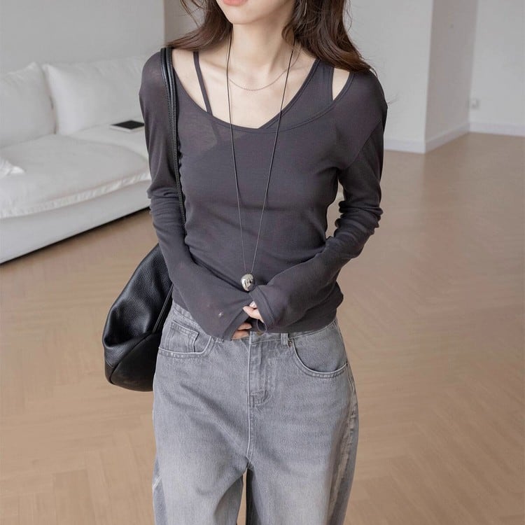 サスペンダー風のデザインが目を引く、レイヤードトップス。 さりげない肌見せがヘルシーで、トレンド感のある着こなしに。 カジュアルなデニムから、きれいめなスカートまで、幅広いアイテムと相性抜群です。 ■サイズ カットソー 【S】 肩幅:38cm 胸囲:74cm 着丈:49cm 袖丈:61cm 【M】 肩幅:39cm 胸囲:78cm 着丈:51cm 袖丈:62cm 【L】 肩幅:40cm 胸囲:82cm 着丈:53cm 袖丈:63cm キャミソール 【S】 胸囲:57cm 着丈:48.5cm 【M】 胸囲:61cm 着丈:50.5cm 【L】 胸囲:65cm 着丈:52.5cm ※モデル身長168cm、Sサイズ着用 ※目安となります。測り方により、1〜3cm程の誤差がある場合がございます。 ■カラー ベージュ グレー ブラウン ■素材 テンセル80% ポリウレタン20% ■FesLushでは、多数アイテムを取り揃えております。 下記URLよりぜひチェックしてみてください♪ https://shop.feslush.com/ ■おすすめ商品はこちら♪ https://shop.feslush.com/categories/6630481 ●●ご購入前に必ずご覧下さい●● こちらをお読みいただき、ご了承いただいた上でご購入をお願いいたします。 →https://shop.feslush.com/about ●注意事項● ・タイミングによっては 商品在庫切れにより注文キャンセルとさせていただく恐れもございます。予めご了承くださいませ。 ・発送までに「1週間〜3週間」のお時間をいただきます。 ・こちらは輸入品となります。日本製とは検品基準が異なる為、新品未使用品でもごくわずかな汚れや傷がある場合もございます。 ・光の当たり具合やお使いの端末の関係上、実際の色合いと若干差が出る可能性がございます。 ・イメージ違いやサイズ交換等、お客さまご都合による交換、返品は対応出来かねます。