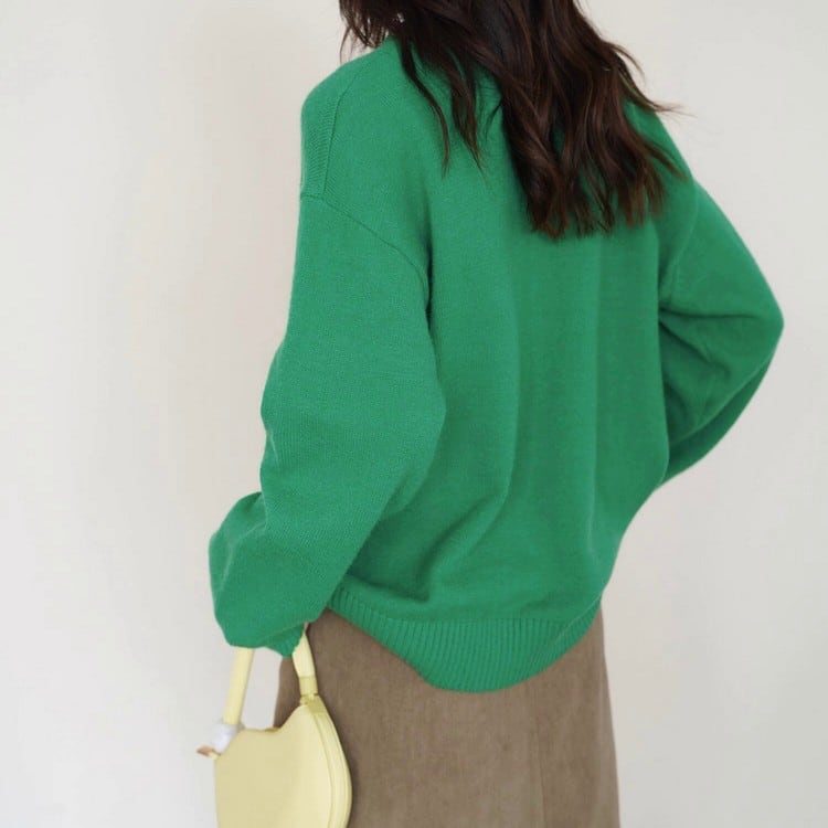 程よいルーズ感が、こなれた雰囲気を演出してくれます。 胸元のさりげないタグが、シンプルなデザインのアクセントに。 お手持ちのアクセサリーや小物とのコーディネートも楽しめます。 ■サイズ 【S】 肩幅:49cm 胸囲:108cm 着丈:62cm 袖丈:53cm 【M】 肩幅:51cm 胸囲:112cm 着丈:63.5cm 袖丈:54cm 【L】 肩幅:53cm 胸囲:116cm 着丈:65cm 袖丈:55cm ※モデル身長163cm、Sサイズ着用 ※目安となります。測り方により、1〜3cm程の誤差がある場合がございます。 ■カラー グレー グリーン ■素材 アクリル42% ポリエステル30% ナイロン28% ■FesLushでは、多数アイテムを取り揃えております。 下記URLよりぜひチェックしてみてください♪ https://shop.feslush.com/ ■おすすめ商品はこちら♪ https://shop.feslush.com/categories/6630481 ●●ご購入前に必ずご覧下さい●● こちらをお読みいただき、ご了承いただいた上でご購入をお願いいたします。 →https://shop.feslush.com/about ●注意事項● ・タイミングによっては 商品在庫切れにより注文キャンセルとさせていただく恐れもございます。予めご了承くださいませ。 ・発送までに「1週間〜3週間」のお時間をいただきます。 ・こちらは輸入品となります。日本製とは検品基準が異なる為、新品未使用品でもごくわずかな汚れや傷がある場合もございます。 ・光の当たり具合やお使いの端末の関係上、実際の色合いと若干差が出る可能性がございます。 ・イメージ違いやサイズ交換等、お客さまご都合による交換、返品は対応出来かねます。