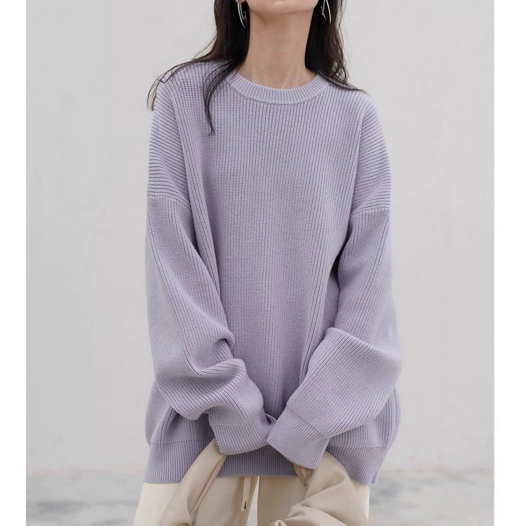 ゆったりとしたオーバーサイズシルエットで、こなれ感を演出。 リブ編みがさりげないアクセントになり、シンプルながらも着映えするデザインです。 デニムと合わせたカジュアルなスタイルや、スカートと合わせたフェミニンなスタイルにもマッチします。 ■サイズ 【S】 肩幅:64cm 胸囲:124cm 着丈:68cm 袖丈:52cm 【M】 肩幅:66cm 胸囲:128cm 着丈:70cm 袖丈:53cm 【L】 肩幅:68cm 胸囲:132cm 着丈:72cm 袖丈:54cm ※モデル身長168cm、Sサイズ着用 ※目安となります。測り方により、1〜3cm程の誤差がある場合がございます。 ■カラー パープル ブラック ■素材 アクリル30% ポリエステル29% モーダル21% ナイロン20% ■FesLushでは、多数アイテムを取り揃えております。 下記URLよりぜひチェックしてみてください♪ https://shop.feslush.com/ ■おすすめ商品はこちら♪ https://shop.feslush.com/categories/6630481 ●●ご購入前に必ずご覧下さい●● こちらをお読みいただき、ご了承いただいた上でご購入をお願いいたします。 →https://shop.feslush.com/about ●注意事項● ・タイミングによっては 商品在庫切れにより注文キャンセルとさせていただく恐れもございます。予めご了承くださいませ。 ・発送までに「1週間〜3週間」のお時間をいただきます。 ・こちらは輸入品となります。日本製とは検品基準が異なる為、新品未使用品でもごくわずかな汚れや傷がある場合もございます。 ・光の当たり具合やお使いの端末の関係上、実際の色合いと若干差が出る可能性がございます。 ・イメージ違いやサイズ交換等、お客さまご都合による交換、返品は対応出来かねます。