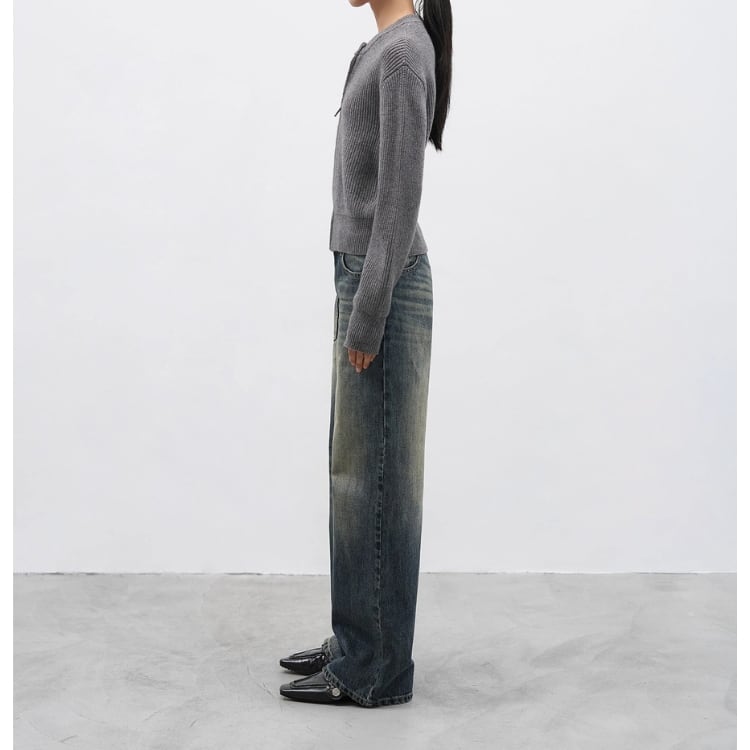 シンプルなデザインで着回し力抜群のニットカーディガン。
