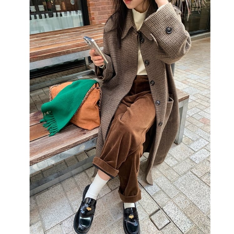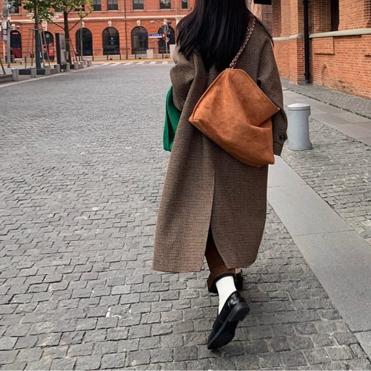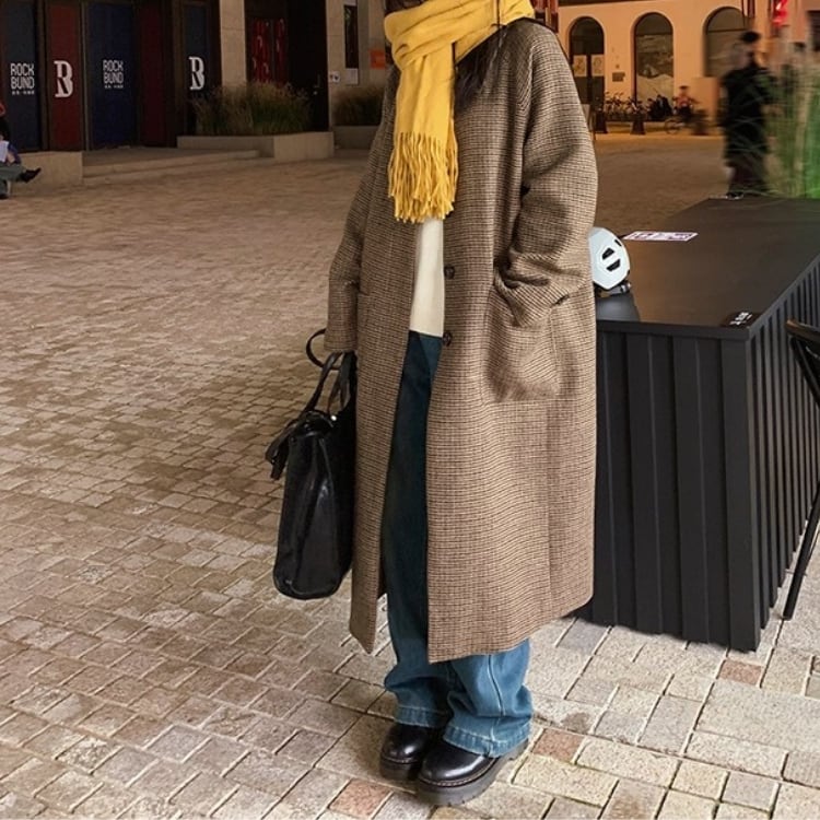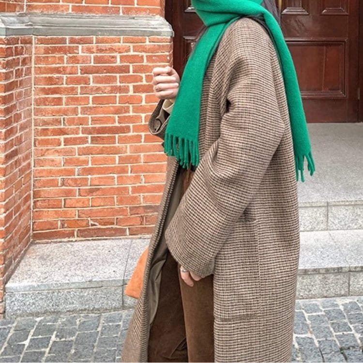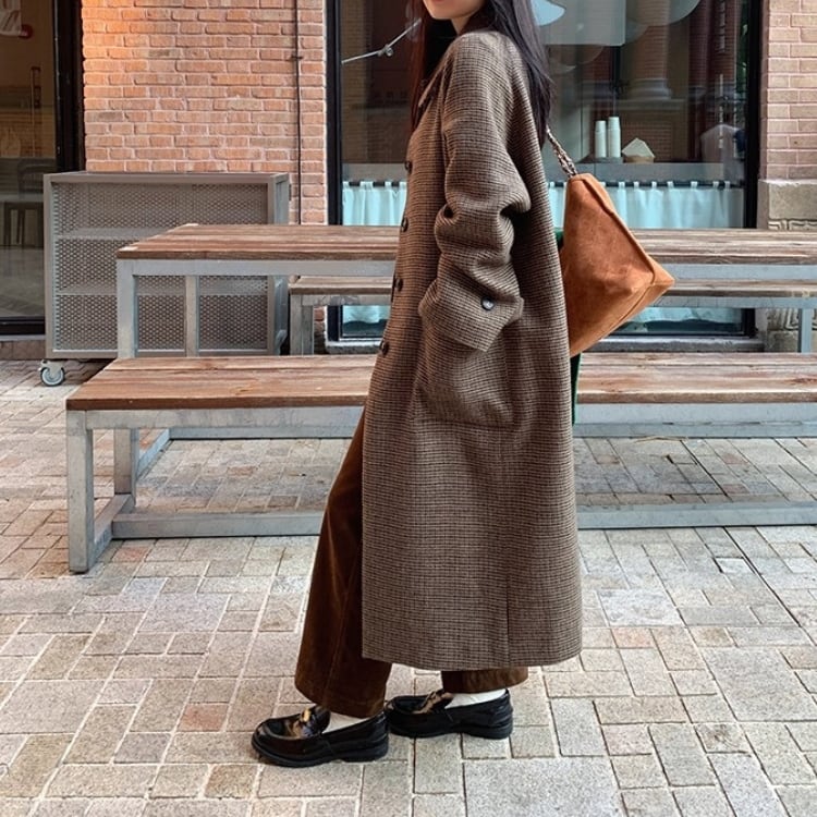 オーバーサイズなので、厚手のニットやスウェットの上にも羽織れます。